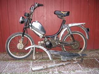 En moped som var oskruvad och komplett. Var finner man en sådan jo i Norrland. Efter att sett en lämplig på blocket slog jag till på en annons som endast varit inne två timmar. Mopeden fraktades ner med Post åkeriet och det var som omväxling bara att köra. Ska försöka att bara putsa upp den.
