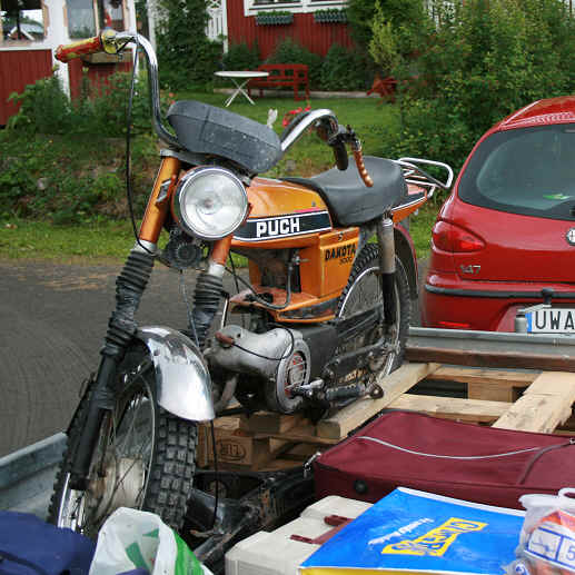 Efter en telefon kontakt som verkade bra . Kopplas släppet på bilen för att köra de 120milen enkel resa. Vad offrars inte för en Dakota 3000 med matching nummbers och rätt årsmodell tillika endast 20 nummer ifrån min 15års moped. Ja nu körde jag inte enbart för den. Eftersom det var semestertider skulle vi upp och fjällvandra och kunde då köra inom och hämta mopeden på vägen till vårt mål (Björkvattnet i norra Jämtland)