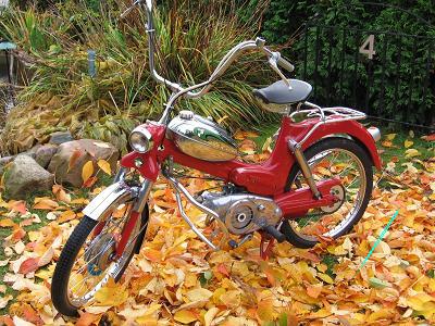 Avgas böjen är hämtat från 1971 år Florida,då .Puch använde sig av detta uppstående blås med brännskydd på .Just av denna anledning slutade man med det igen. Shorts och uppstående avgasrör är garanterat en svidande upplevelse, men det ger ett häftigare ljud och drag.